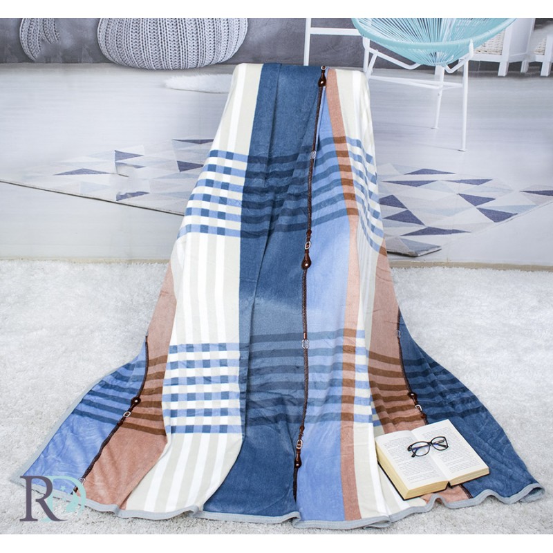 Одеялото е много меко и топло, в преобладаващи цветове синьо и бежово.