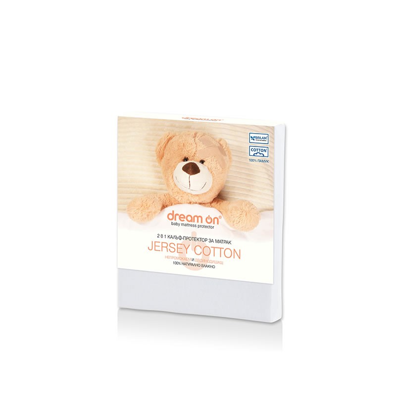 JERSEY COTTON е със 100% естествени памучни влакна за всякакъв вид кожа. Памукът е от най-използваните и ценни влакна в производството на текстил от древни времена. Използвайки мекотата и свойствата му - хладно през лятото, топло през зимата, създадохме JERSEY COTTON за вашето бебе. Именно тези характеристики го отличават с фина повърхност и приятен допир, осигуряващи комфорт на нежната бебешка кожа. JERSEY COTTON за вашето бебе, ще направи по-пълноценна тяхната почивка и ще създаде спокойствие за майките. Мек, удобен и безшумен. Напълно непромокаем. двойнодишащ и предпазващ от акари, благодарение на интелигентната мембрана BRILAM.