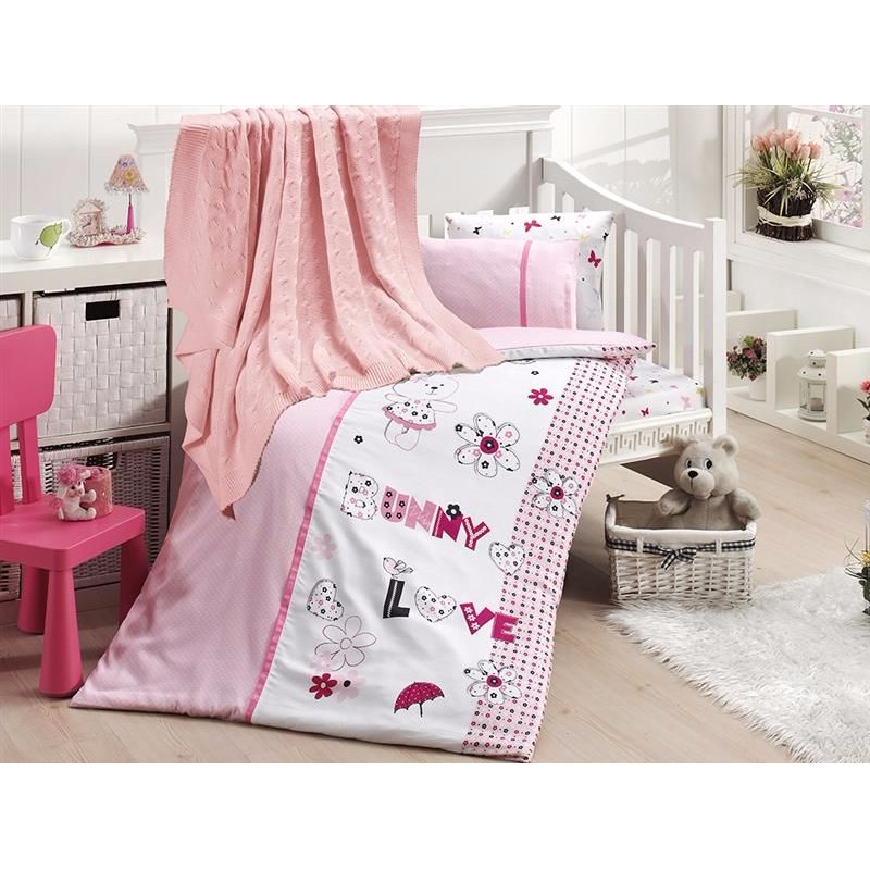 Бебешко спално бельо бамбук с памучно одеяло - Love Bunny
