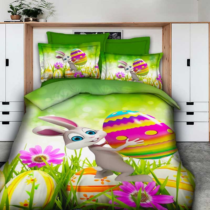 Ако търсите начин да направите този Великден весел и незабравим, вземете си великденски спален комплект. Създаден от качествена 100% памучна нишка, той ще осигури мек комфорт на тялото ви. Лицевата част на спалното бельо е изработена от мек и качествен 3D поликотън, който не губи формата си след многократни изпирания. Комплектът е наситен с живи цветове, които ще освежат всяка стая. За да запазите ярките цветове, не използвайте избелващи препарати и преместете на подходяща температура от 30 градуса. Насладете се на качествения сън и посрещнете Великден с усмивка и комфорт.