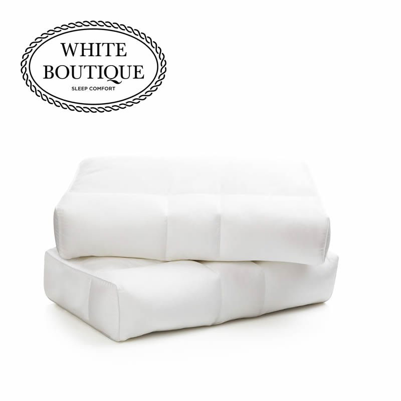 Medibon е единствената възглавница в серията White boutique със специфична форма. Моделът е специално създаден за хора, свикнали да спят по гръб и настрани на висока възглавница. Поддържащият борд има ортопедична функция и гарантира перфектна опора като облекчава болките във врата и гърба. Особено подходяща за мъже с широка раменна извивка.