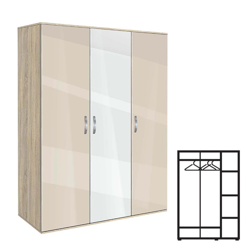 Модерен визуален ефект: Средната врата в стилен бял гланц контрастира елегантно със страничните врати, които са в един и същ цвят, придавайки гардероба уникалност и харесван дизайн.