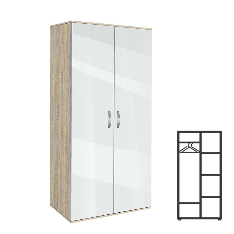 Двукрилен гардероб, АВА 2, сонома с бял гланц