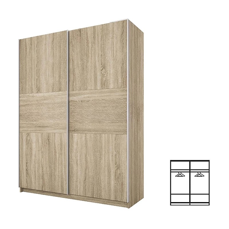Представяме ви функционалния и стилен двукрилен гардероб с плъзгащи врати, създаден да превърне всяко жилище в образец на ред и елегантност. Този гардероб е перфектното решение за съхранение на дрехи и аксесоари, комбинирайки интелигентен дизайн с изключителна практичност. Изработен от висококачествено ПДЧ с дебелина 16 мм, той предлага оптимална здравина и дълготрайност.