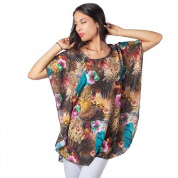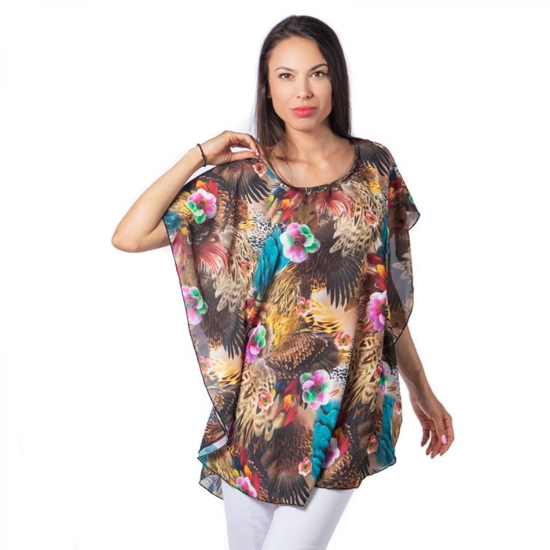 Стилен и ефирен модел, подходящ за всеки дамски силует. Моделът е атрактивен, изключително удобен. И е изработен от високо качествен шифон. Материята е лека и проветрива, но не прозира и не се разнищва. Авторският ни принт и лимитираната серия гарантират уникалност и идентичност на този модел.