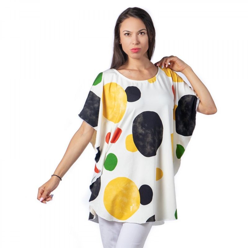 Стилен и ефирен модел, подходящ за всеки дамски силует. Моделът е атрактивен, изключително удобен. И е изработен от високо качествен шифон. Материята е лека и проветрива, но не прозира и не се разнищва. Авторският ни принт и лимитираната серия гарантират уникалност и идентичност на този модел.