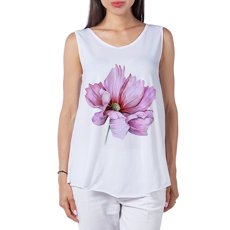 Прекрасен Дамският потник, модел e подходящ за летните горещини, с удобна и широка кройка. Широки презрамки за по вече свобода, с дигитален 3D принт предаващ индивидуалност.