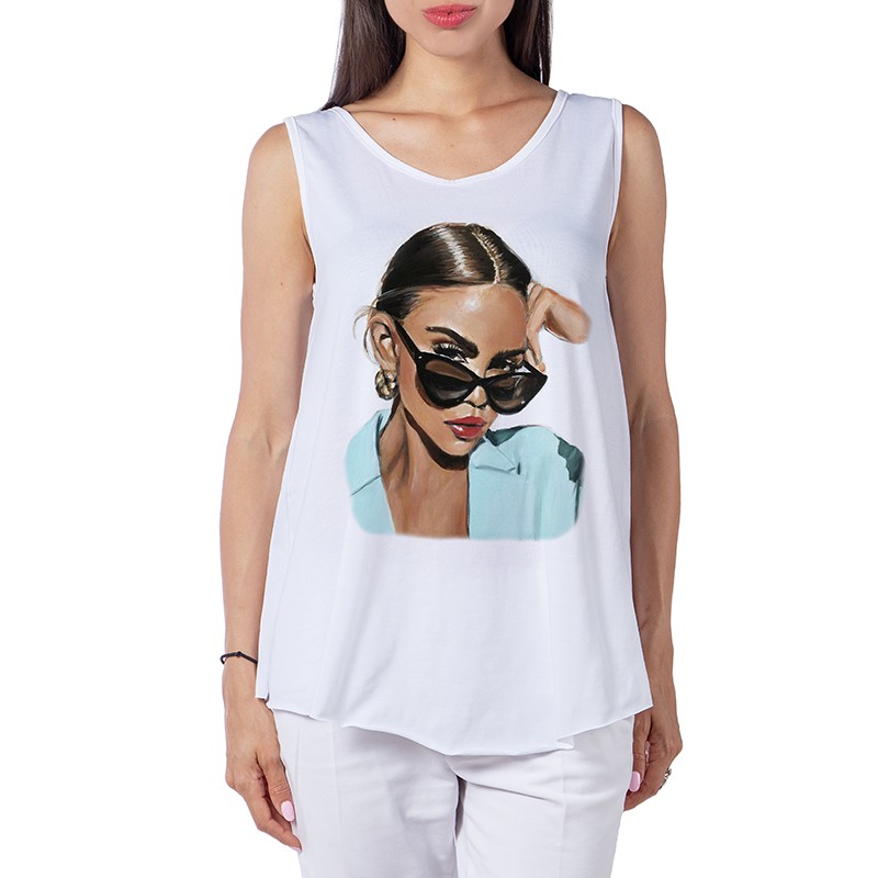 Прекрасен Дамският потник, модел e подходящ за летните горещини, с удобна и широка кройка. Широки презрамки за по вече свобода, с дигитален 3D принт предаващ индивидуалност.