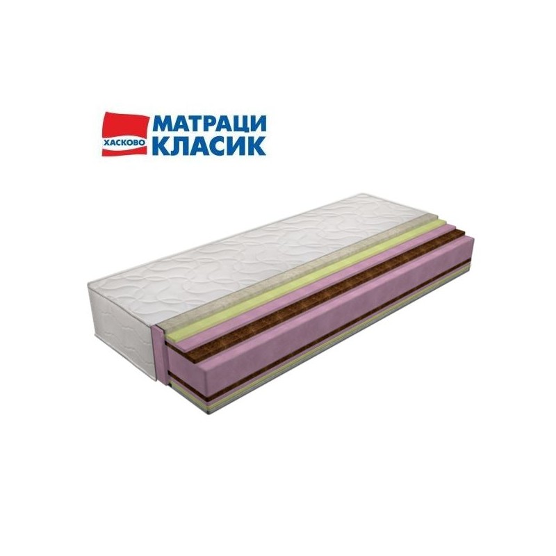 Ядрото от еластична пяна и слоевете от кокосова вложка правят матрака твърд, с висока издръжливост на натоварване. Моделът е подходящ за подрастващи и подпомага правилната поддръжка на гръбначния стълб. Кокосовата вложка осигурява перфектна топлинна изолация и поддръжка на температурата на тялото постоянна. Тя е с висока дишаща активност, което осигурява добра вентилация на матрака.