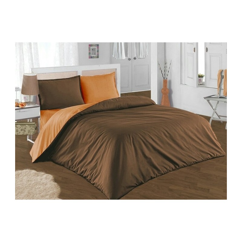 Двулицево спално бельо - кафяво/оранж