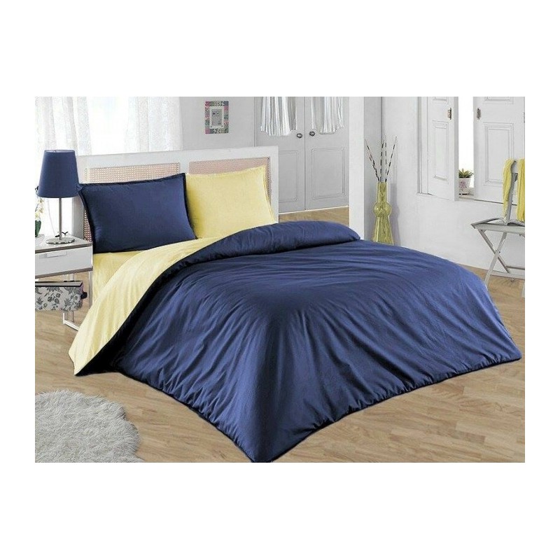 Двулицево спално бельо - тъмно синьо/светло жълто