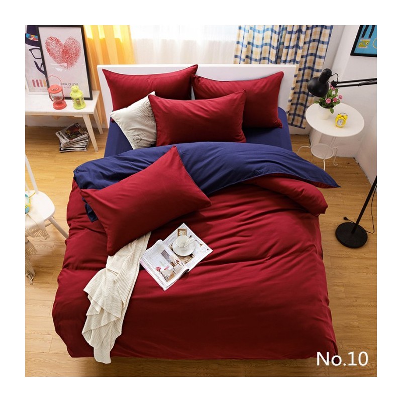 Двулицево спално бельо - бордо/тъмносиньо