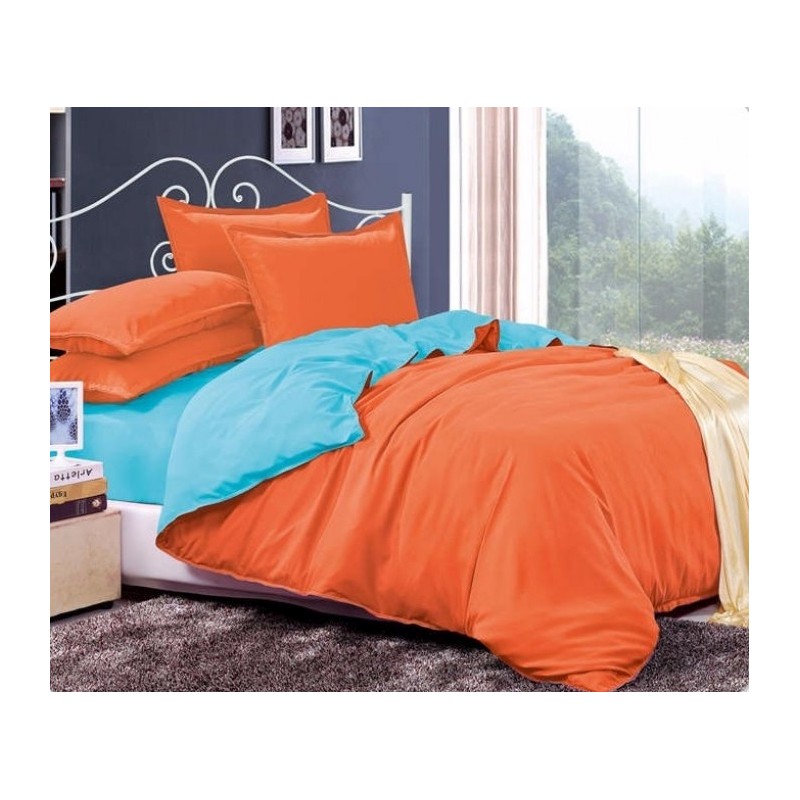 Двулицево спално бельо - оранж/светло синьо