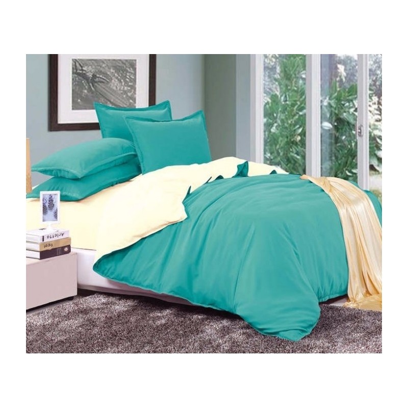 Двулицево спално бельо - тюркоаз/бяло