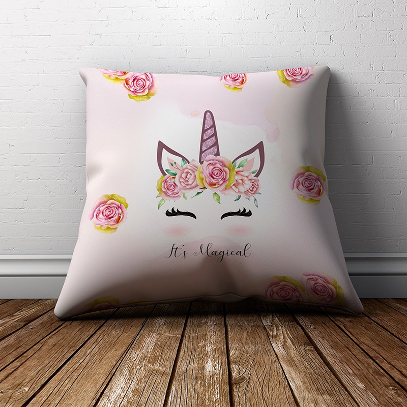 Пухкава декоративна възглавничка с цветен принт.