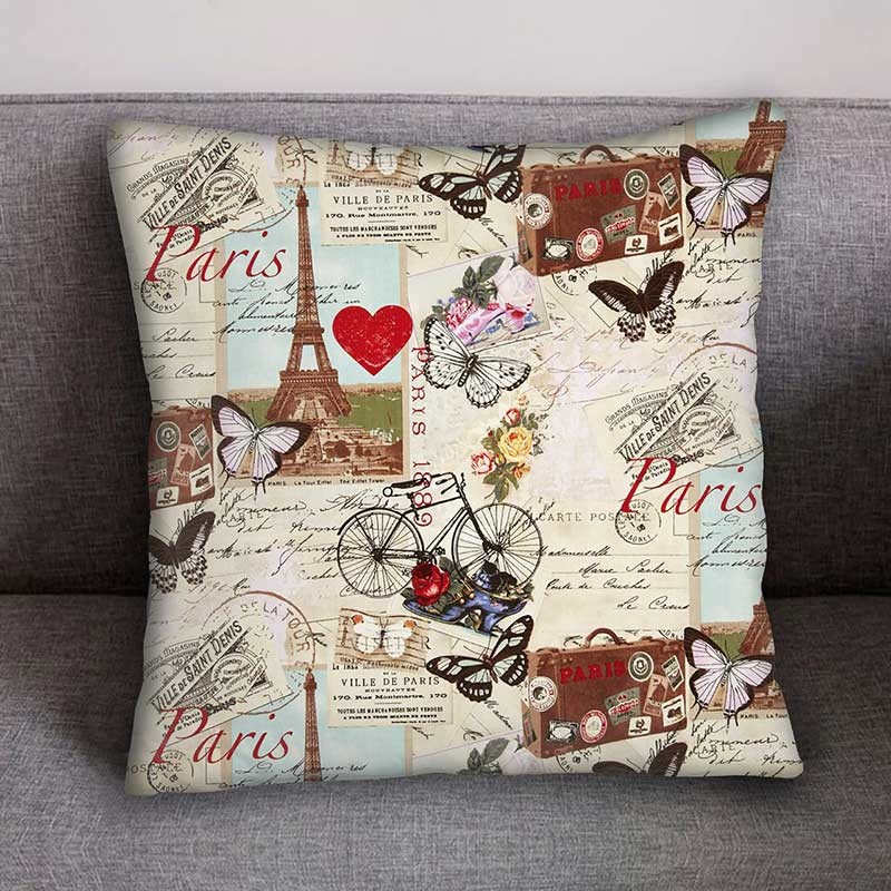 Пухкава декоративна възглавничка с цветен принт.