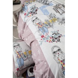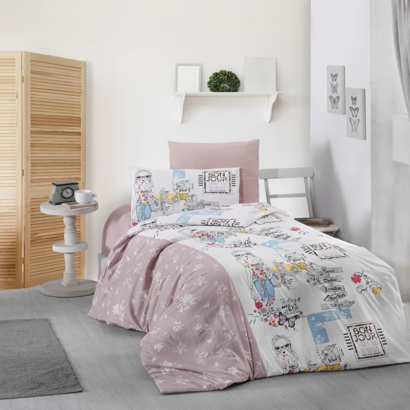 Спално бельо произведено от Ранфорс, 100% памук, 57 нишки/см2, 30/1 прежда, характеризиращо се с голяма здравина, устойчивост при пране и нежно при допир. Новата технология за багрене на цветове, която придава допълнителна здравина на тъканите и устойчивост при пране.