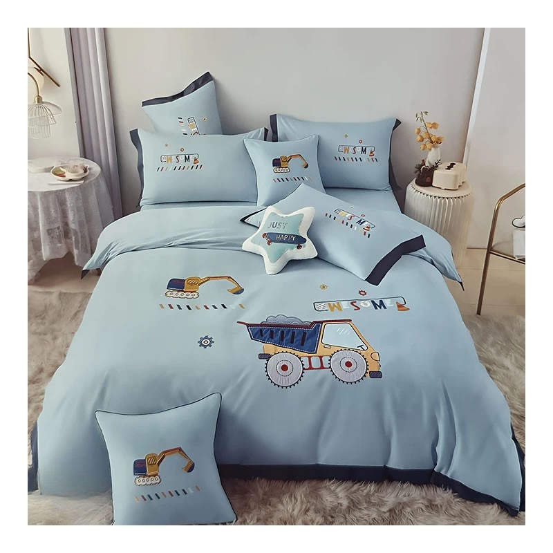 Преобразете детската стая с този детски спален комплект, който съчетава стилен дизайн и високо качество. Комплектът включва плик за одеяло или завивка, долен чаршаф и две калъфки за възглавници, изработени от луксозен памучен сатен с висок брой нишки, което го прави изключително мек, издръжлив и приятен за кожата.
