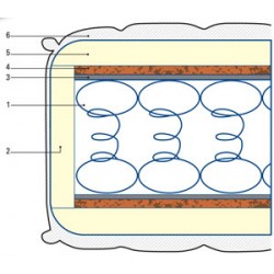 1 - Пружинно ядро: - изработва се по технология “Бонел”, съдържа 125 бр./м2 стоманени двойноконусни, термично обработени пружини, съединени със спирална пружина.