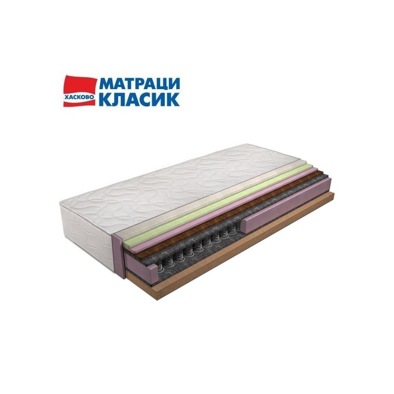 Матрак с отлична ортопедична характеристика, заслуга за което има слоят от кокосови влакна, които са естествен и антибактериален материал. Препоръчва се за хора с проблеми в областта на гърба и кръста! Има висока издържливост, независимо от натоварването, дълъг живот и неподатливост на деформация. Допълнителен телесен комфорт предлага еластичната пенополиуретанова пяна.