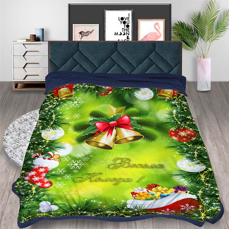 Коледно поларено одеяло с две лица от мека плюшена материя с висококачествена 3D щампа. Материята, използвана за тaзи мекa и уютна двулицева завивка , е 100% полиестер Дигиталната щампа е с наситени цветове, издържащи на многократните изпирания. Устойчивостта на материята запазва наситеността на цветовете и не губи формата си. Плътността на мик бръшът позволява използването на завивката в зимния сезон .