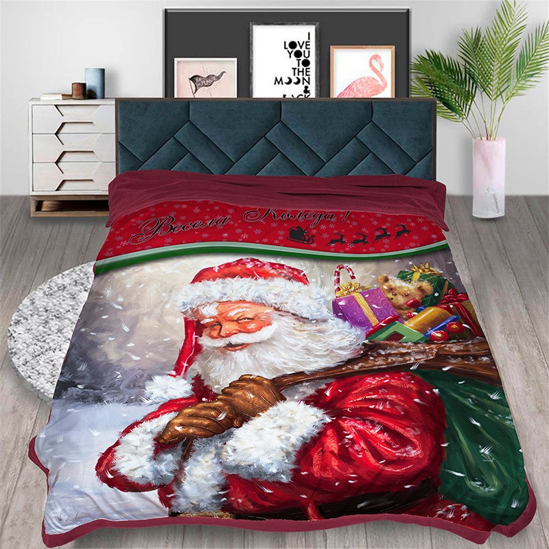 Коледно поларено одеяло с две лица от мека плюшена материя с висококачествена 3D щампа. Материята, използвана за тaзи мекa и уютна двулицева завивка , е 100% полиестер Дигиталната щампа е с наситени цветове, издържащи на многократните изпирания. Устойчивостта на материята запазва наситеността на цветовете и не губи формата си. Плътността на мик бръшът позволява използването на завивката в зимния сезон .