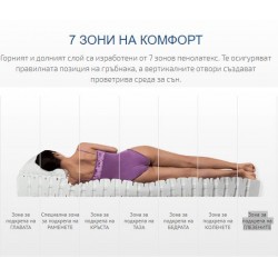 7-зонов пенолатекс: Горният и долният слой са изработени от 7-зонов пенолатекс, който осигурява правилна поддръжка на гръбнака и разпределя тежестта на тялото равномерно.