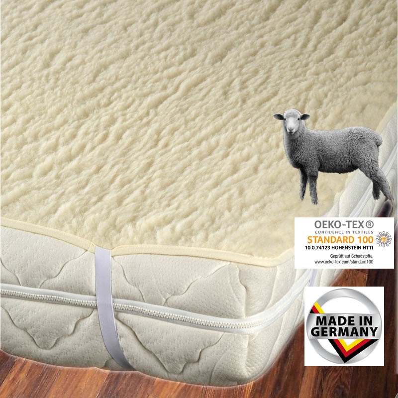 Вълненeния протектор за матрак осигурява допълнителна топлина през зимата и перфектен климатичен регулатор през лятото. Не само защитава вашия матрак, но и увеличава комфорта Ви за сън благодарение на неговите свойства като естествен материал. Удобно топло благодарение на вълната и в същото време дишаща и щадяща кожата - гарантира нежен и спокоен сън. Лесно се поставя благодарение на ластици в ъглите подходящ за матраци с размер: от 82 x 190 cm до 100 x 200 cm