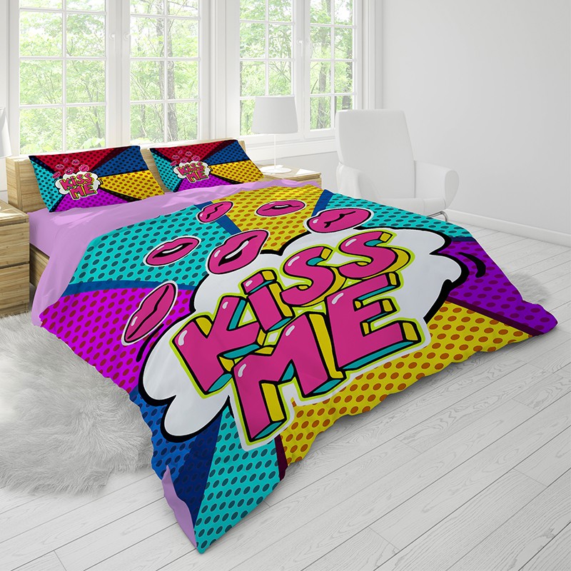 Материята, използвана за този мек и уютен спален комплект, е висок клас Поликотън. Поради своята устойчивост, материята запазва наситеността на цветовете и не губи формата си дори при многократни изпирания. Плътната и нежна нишка съдържа 80% памук и 20% полиестер. Плътността на плата позволява използването му както в зимния сезон, така и през летните горещини.