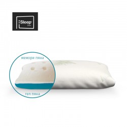 • Иновативно двуслойно ядро от Memory Foam и Gel Foam - правилна позиция на главата и врата, охлаждащ ефект и отнемане на напрежението