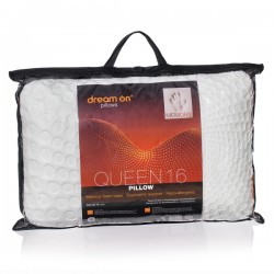 Възглавницата DreamOn® QUEEN 15 притежава екстра височина (16cm) за хора с широки рамене или такива които предпочитат висока възглавница. Ядро от мемори пяна със специална формула за меко и по-комфортно усещане при сън. Уникалния дизайн позволява на рамената да прилегнат плътно под възглавницата, така поддържа главата и шията Ви при спане на една страна. Антибактериален калъф от външната страна и вътрешен калъф за по-добра хигиена. Препоръчва се от физиотерапевти и акупресуристи.