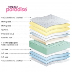 Модел Аура Фреш има ядро от високоеластична пяна, едностранно профилирана с обособени 5 зони на комфорт. От профилираната страна на ядрото има слой Latex Like Foam и два слоя Memory пяна в прошивката. Така различните характеристики от двете страни дават възможност за индивидуален избор на усещане за мекота и комфорт. Бордът на матрака е с 3D лента с дишаща структура за добра вентилация. Модел Aura Fresh се предлага със сваляем калъф с цип от специален текстил, с нежен и деликатен допир към кожата.
