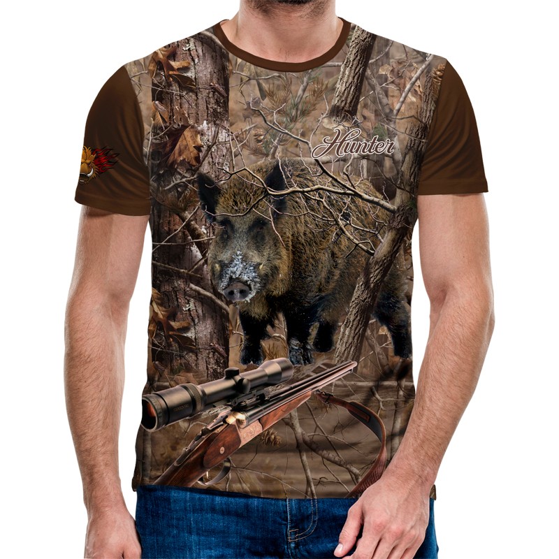 3D Мъжка тениска с ловни мотиви Boar