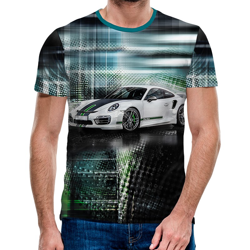 Представяме ви 3D тениска с привличащо вниманието изображение на автомобил - идеалното облекло за любителите на моторни превозни средства! Изработена от висококачествена полиестерна тъкан с ликра, тази тениска предлага комфортно разтягане до 5%, което гарантира плътно прилягане. Технологията за цифров печат, използвана в производствения процес, запазва яркостта на цветовете, като гарантира, че изображението на автомобила остава ярко дори след многократно пране.