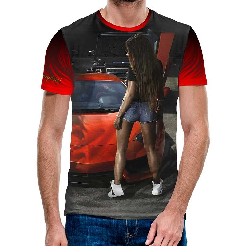 Представяме ви 3D тениска с привличащо вниманието изображение на автомобил - идеалното облекло за любителите на моторни превозни средства! Изработена от висококачествена полиестерна тъкан с ликра, тази тениска предлага комфортно разтягане до 5%, което гарантира плътно прилягане. Технологията за цифров печат, използвана в производствения процес, запазва яркостта на цветовете, като гарантира, че изображението на автомобила остава ярко дори след многократно пране.