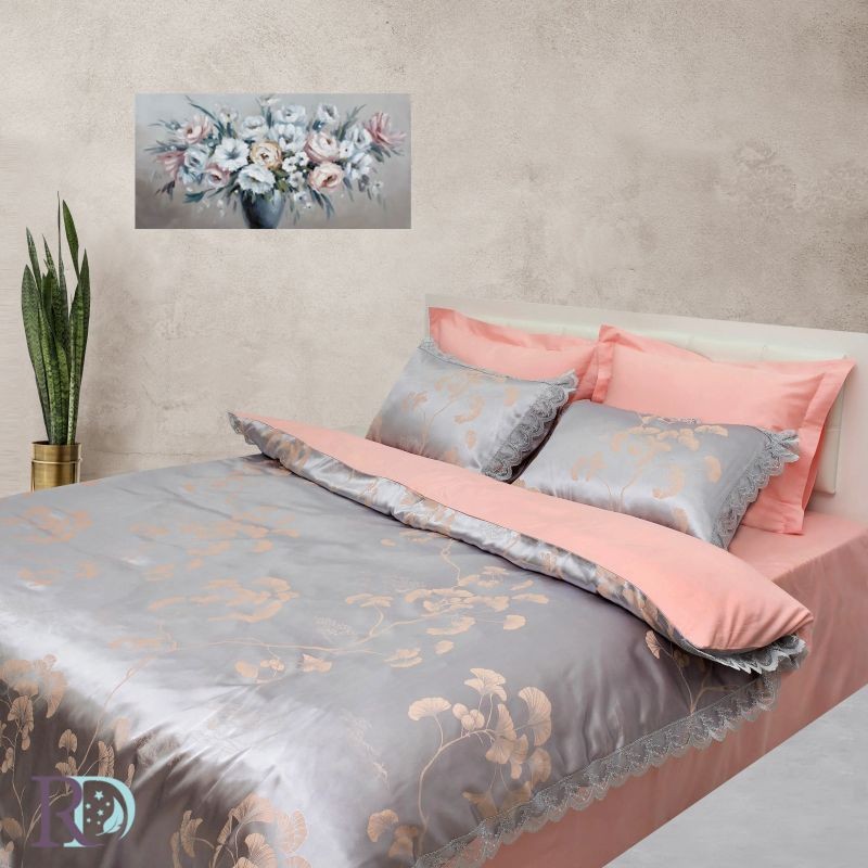 Калъфки за възглавници: Калъфките са истинско произведение на изкуството - изработени от жакард с елегантна дантела от страни на лицевата част. от другата страна са едноцветни, от мек памучен сатен, допълващи перфектно общия дизайн.