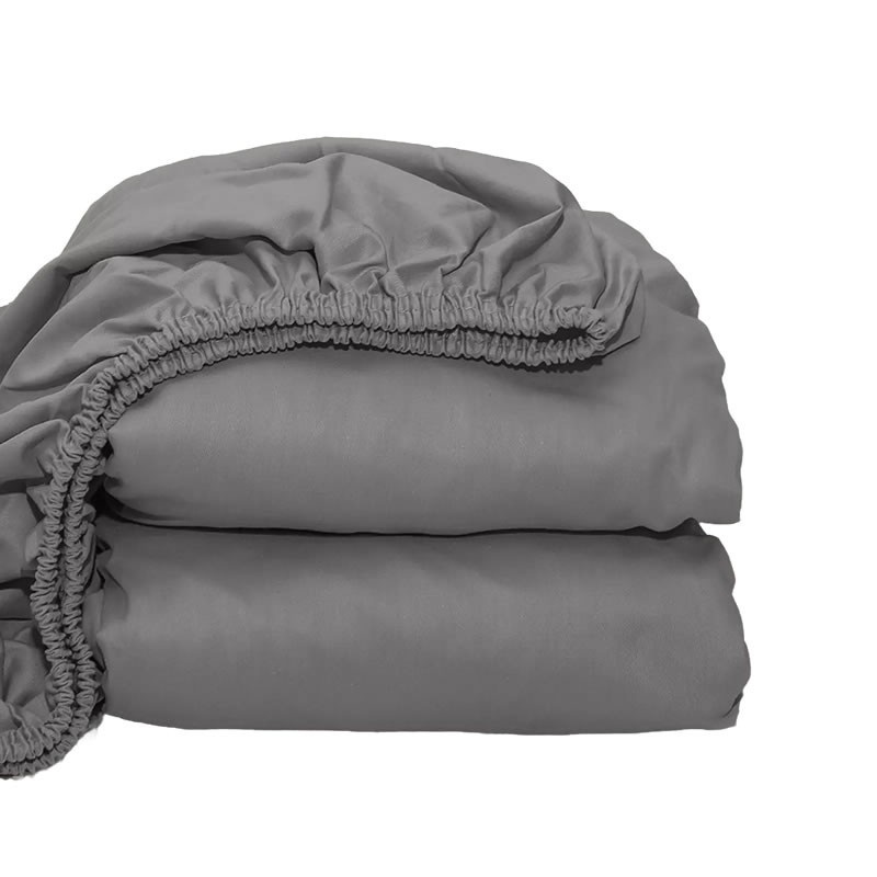 Чаршаф памучен сатен с ластик, тъмно сиво 25см
