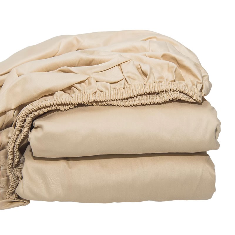 Чаршаф памучен сатен с ластик, Бежово 25см