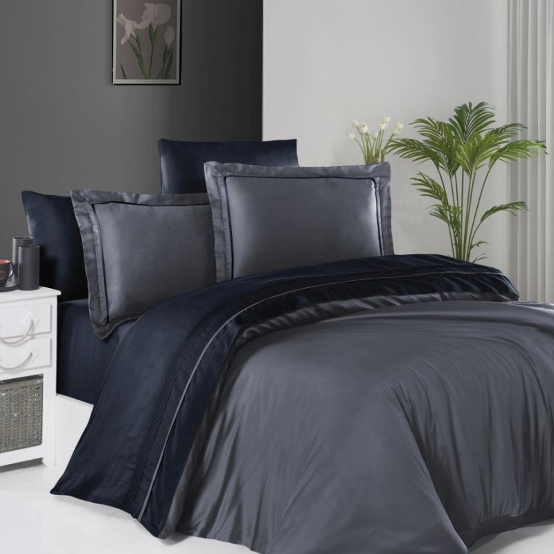 Луксозно спално бельо Deluxe Serenity Dark Grey, Navy Blue