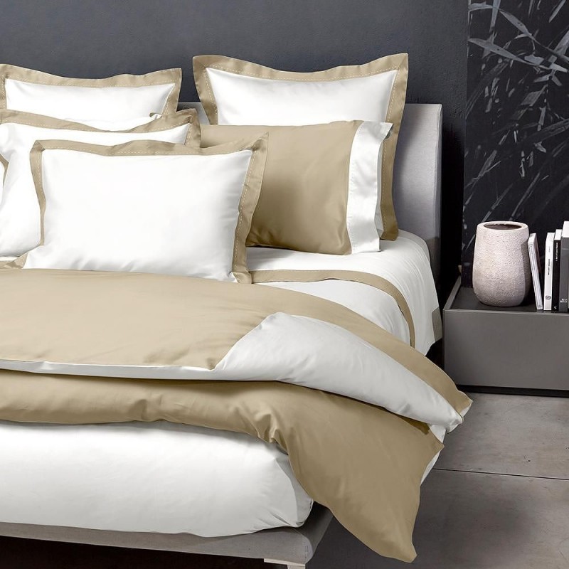 Луксозният модерен дизайн е характерен за колекцията Double. Тя е особено харесвана от хората с млад дух, ценящи актуалните съвременни акценти в своето ежедневие. Цветни бордове в подходящ тон и стилен тигел в цвета на фона са детайли, които привличат вниманието. Торбата за завивка е с две различни лица и може да се използва от двете страни. Багрене на тъканите с известна италианска техника, която осигурява изключителна издръжливост, осигурява още едно удоволствие от ползването на изящния спален текстил от серията.
