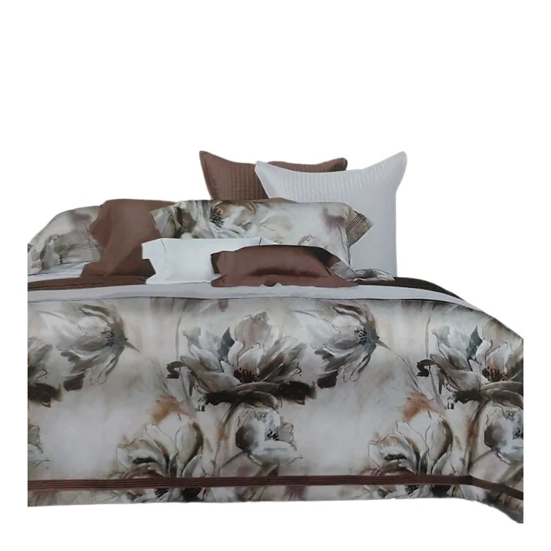 Луксозен спален комплект памучен сатен Даная, цветя бежово
