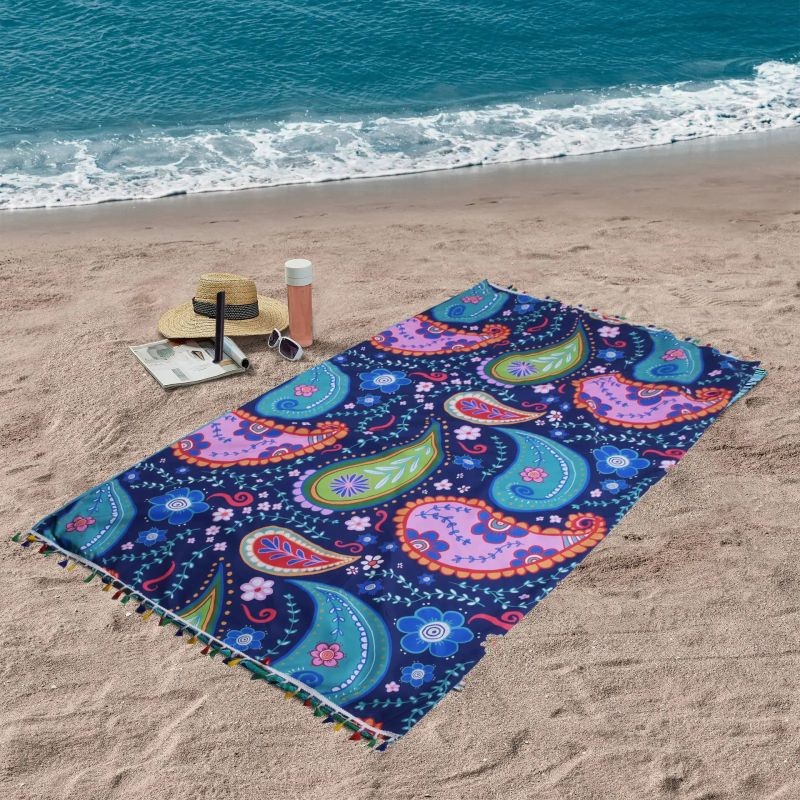 Плажната двулицева кърпа с микрофибър е изработена от висококачествени 100% микрофибърни материали. Едната страна се отличава с цифров печат в ярки цветове и шарки, докато другата страна разполага с едноцветен дизайн. Тези изключително леки кърпи са не само удобни за носене, но и бързо съхнещи, което ги прави идеални за плажни приключения. Със своя състав от 100% микрофибър, тези кърпи предлагат както издръжливост, така и мекота, което ги прави перфектният спътник за всяко лятно забавление.