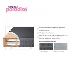 Основа Oniks Lux е подходяща както за обзавеждане на хотели, така и за дома. Тя представлява тапицирана твърда конструкция, върху която се поставя двулицев матрак. Изработена е от висококачествена иглолистна дървесина, допълнително укрепена с подсилващи ребра и фазерна плоскост. Опция: предлага се в два цветови варианта – графит или светлосиво.