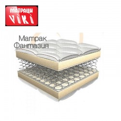 Двулицевият матрак Фантазия е изграден върху пружинен пакет тип Бонел, покрит с иглонабит латексов филц, слой Kovafoam и слой 2 см дунапрен Т25. В допълнение, матрака е прошит с топ матрак от високоеластична пяна HR3225 от всяка страна. Калъфа му е елегантно съчетание от сив борд Floral Grey и бял панел Silver dots.