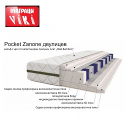 Двулицевият матрак ” Zanone“ е изграден върху ядро от пружини “Pocket springs”. За максимално удобство, от всяка страна на матрака са поставени по един слой висококачествена SD пяна и седем зонова профилирана високоеластична пяна. Матрака е с полиуретанов борд и висококачествена памучна дамаска “Real Bamboo” под която е поставен защитен олекотен филц тип Spunbond и силиконова вата с цип. Това дава възможност калъфа да бъде свален и изпран при максимална температура 30.