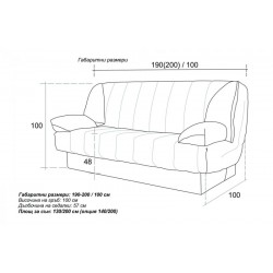 Габаритни размери: Шир. 190-200 см / Дълб. 100 см