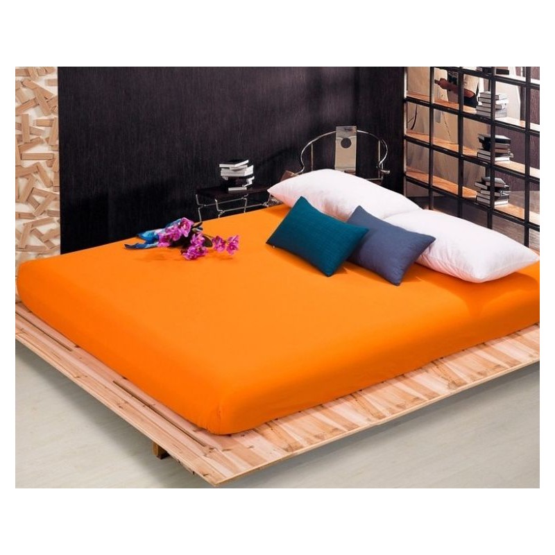 Памучен чаршаф с ластик Ранфорс, оранжев