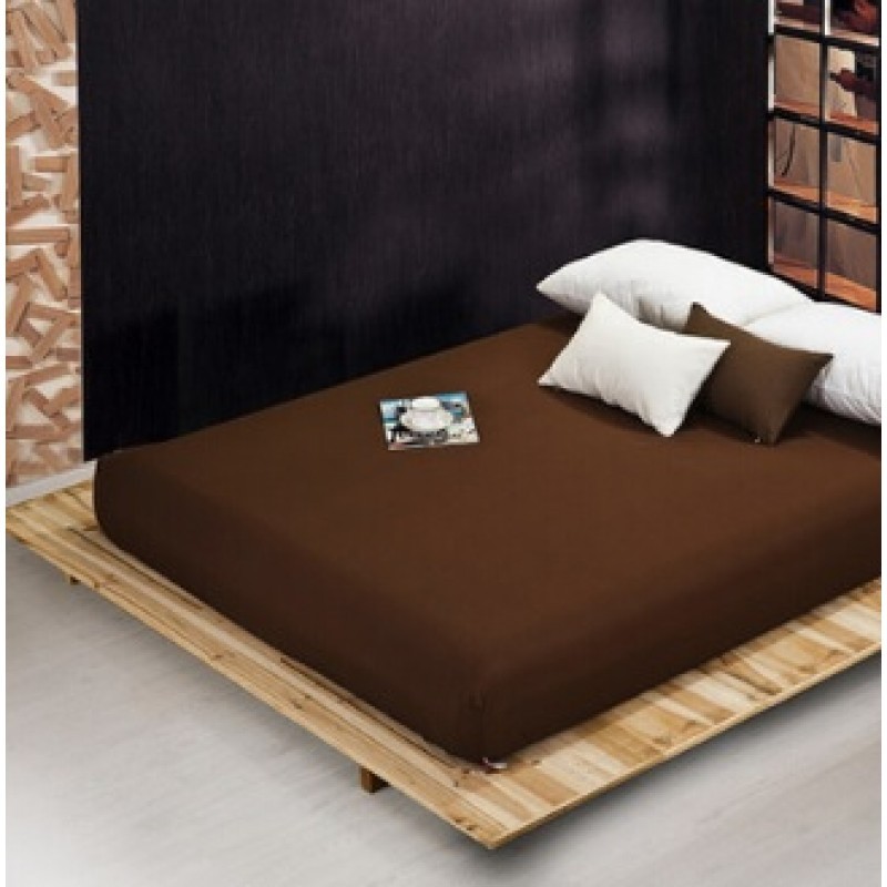 Памучен чаршаф с ластик Ранфорс, тъмно кафяв