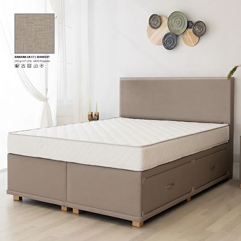 Британска визия с изтънчен и изискан стил. С типична британска визия и облечен изцяло в текстилна тъкан по избор, легло Comfort Supreme с добър акцент в интериора на всяка спалня. Табла с красив и романтичен дизайн, това ще добави още по-изтънчен вид на модела. Стабилната основа е с вградени 4 странични чекмеджета и е подходяща за всички модели двулицеви матраци.