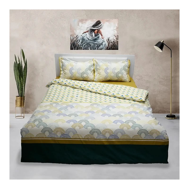 • Чистота и Стил: Едноцветният долен чаршаф осигурява нежен фон за ярките мотиви отгоре, допринасяйки за хармоничен и спокоен общ вид на леглото.